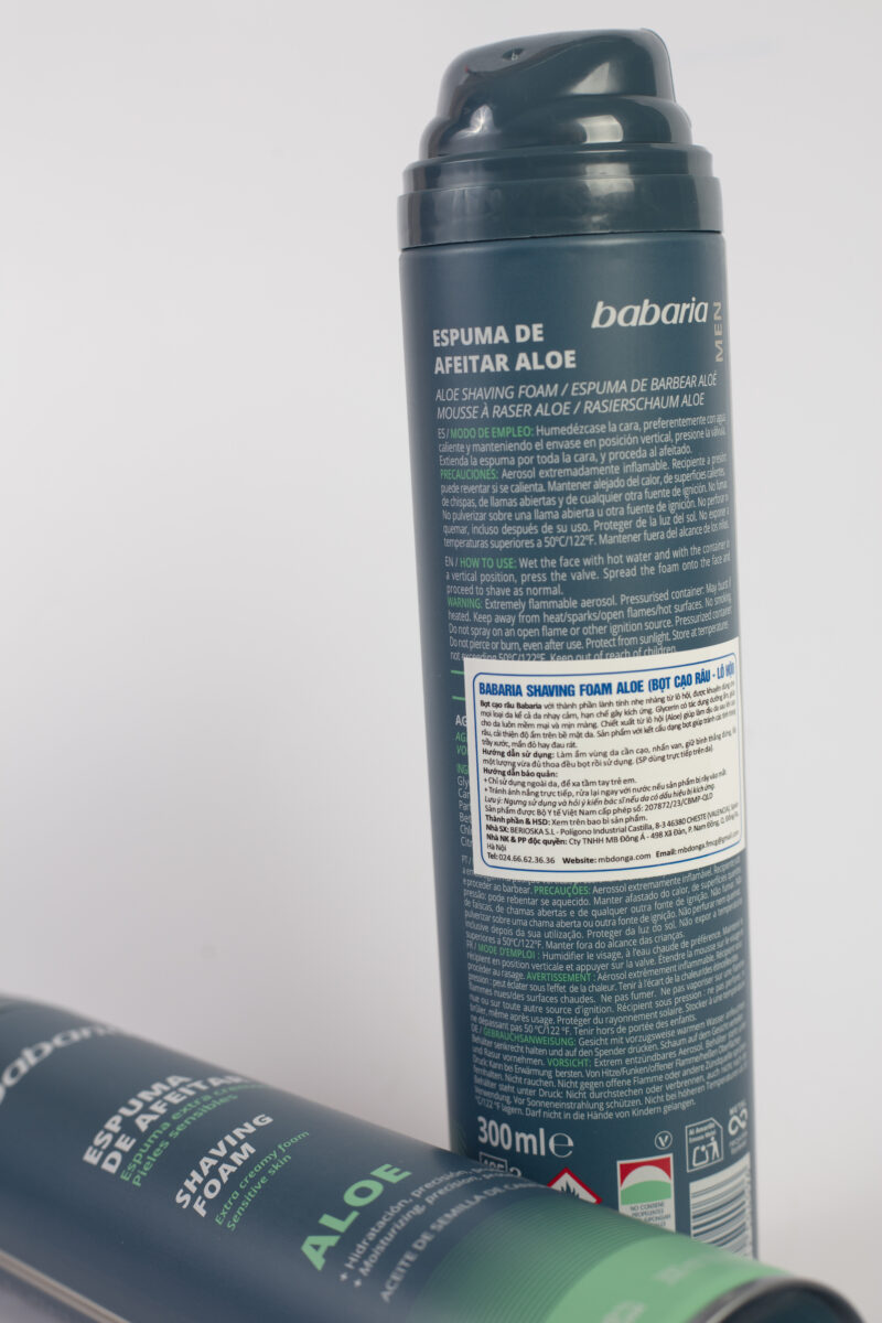 Bọt cạo râu babaria với thành phần lành tính nhẹ nhàng từ lô hội, được khuyên dùng cho mọi loại da kể cả da nhạy cảm, hạn chế gây kích ứng.